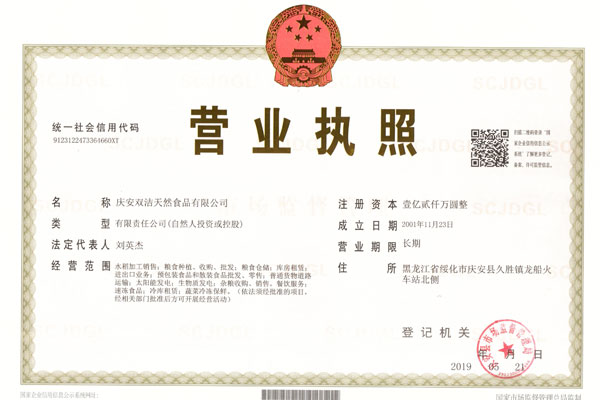 慶安雙潔天然食品有限公司認(rèn)定為黑龍江省農(nóng)業(yè)產(chǎn)業(yè)化重點(diǎn)龍頭企業(yè)
